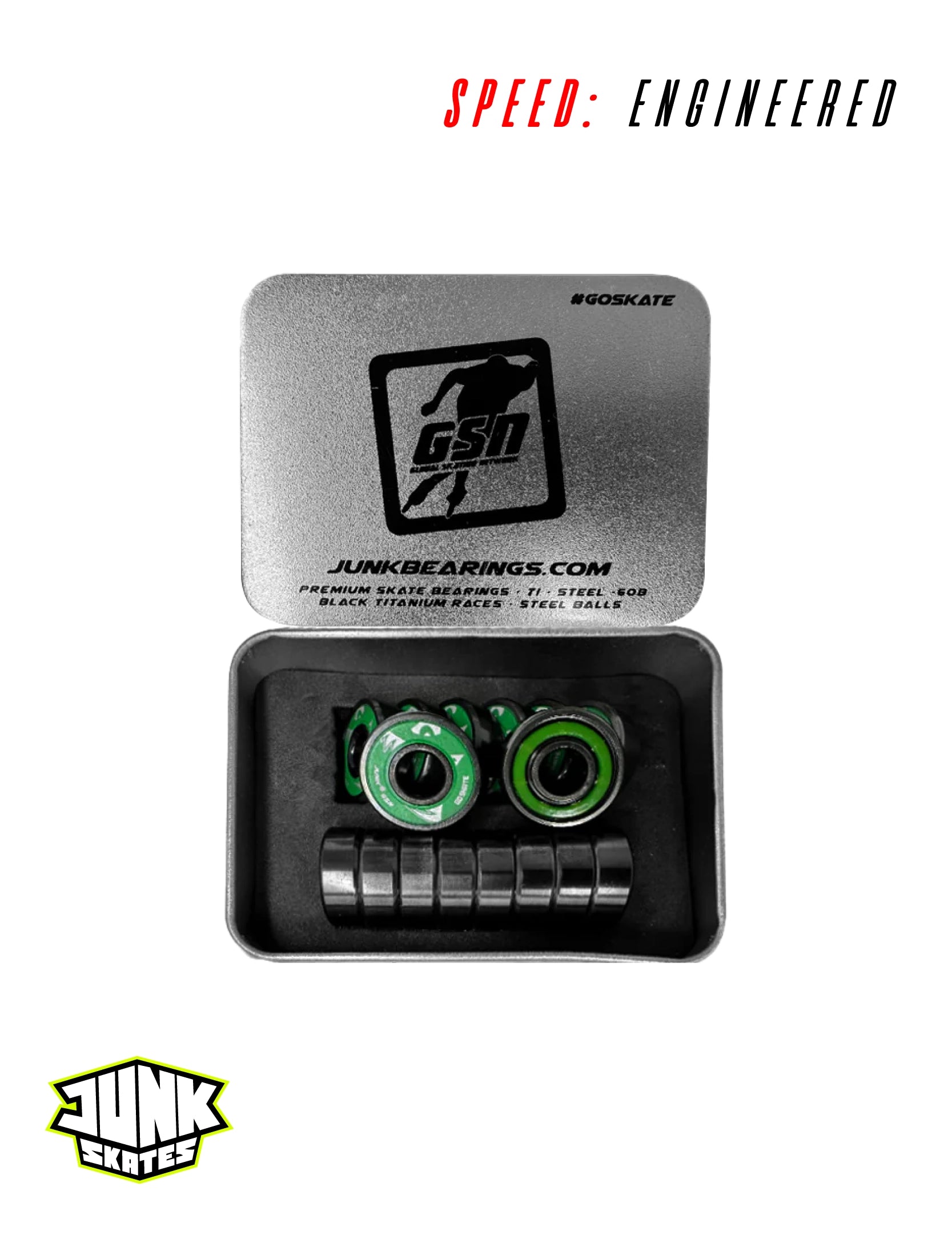 The New GSN Bearings come packed with our PRO Ultimate + Speed Lubricant, which means that your bearings will be race ready out of the box.