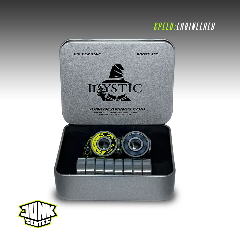 The Mystic Pro 6ix Ceramic has six big ceramic balls of larger diameter, rather than seven balls used in most standard 608 bearings. Thanks to the larger balls, our raceways are deeper which gives you tighter tolerances that translate into greater acceleration, higher top end speed and greater strength and durability. Our ceramic balls are made out of the top quality Silicon Nitride (Si3N4)